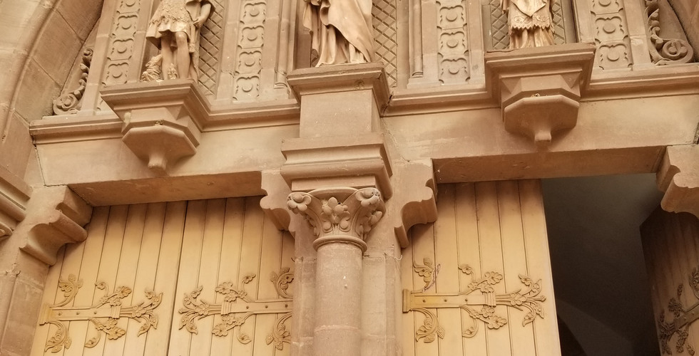 I entered through a partially opened large door with ornate metal supports and was awed by extraordinary stained glass windows at the Apse.