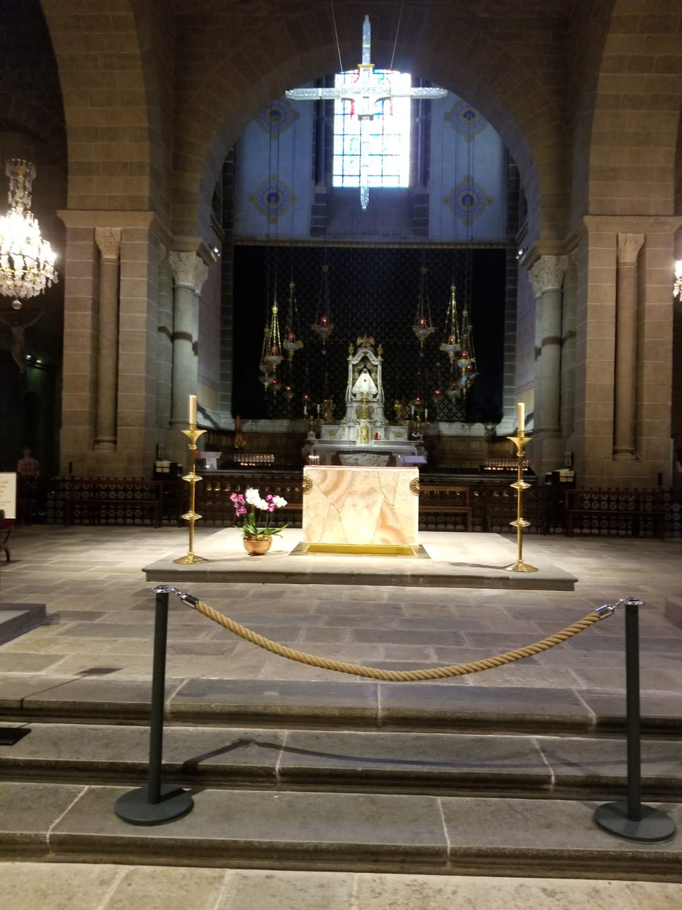 The Cathedral is a particularly serene place. Pilgrims, locals and Religieuse enjoy the pilgrim mass each day. For me it was a perfect start to this incredible journey. I celebrated Mass beside the same nun that had registered me into the Seminary the night before. I felt a little uncomfortable being beside a woman dressed from head to toe in a black habit and whimple while I was breezily comfortable in my sleeveless lululemon top and pink capris (why I chose pink I'll never know) but it was a done deal at that point. I tried not to dwell on it and listened to the familiar rhythym of the service and enjoyed my beautiful surroundings in La Cathedrale de la Notre Dame du Puy. Containing architecture from every period from the 5th to 15th Centuries. https://en.wikipedia.org/wiki/Le_Puy_Cathedral I could feel the weight of history swirling around me in whispers and scents.