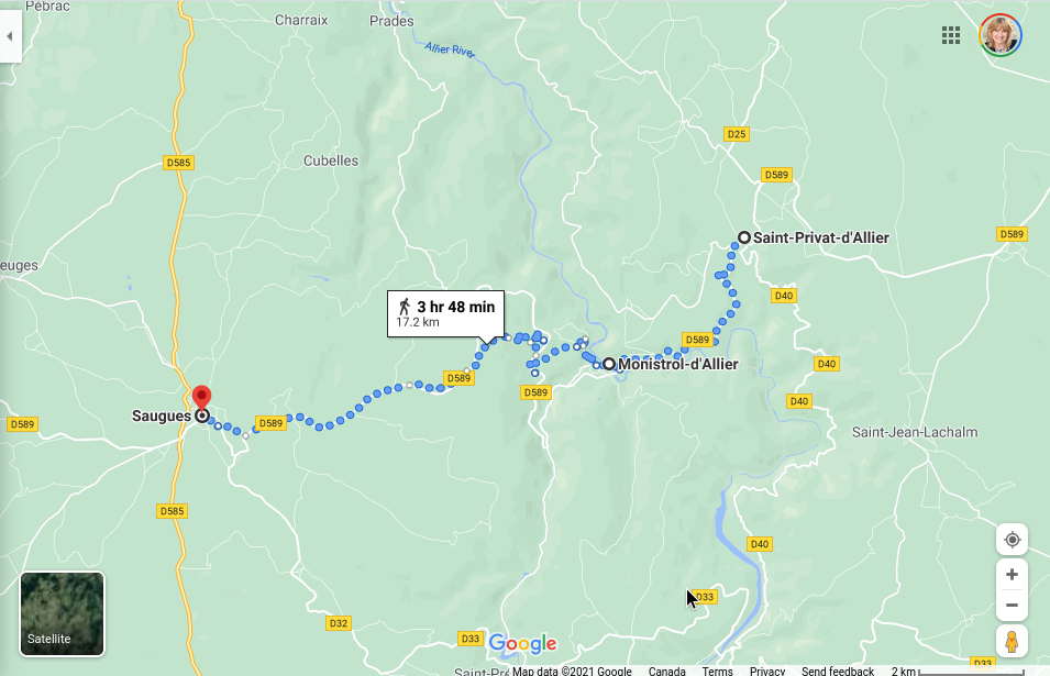 Julian: No. I stopped in St. Privat D'Allier like you - two days just conflated in my mind sorry about that! I remember the walk to Saugue being just generally hard because you basically cross a mountain.